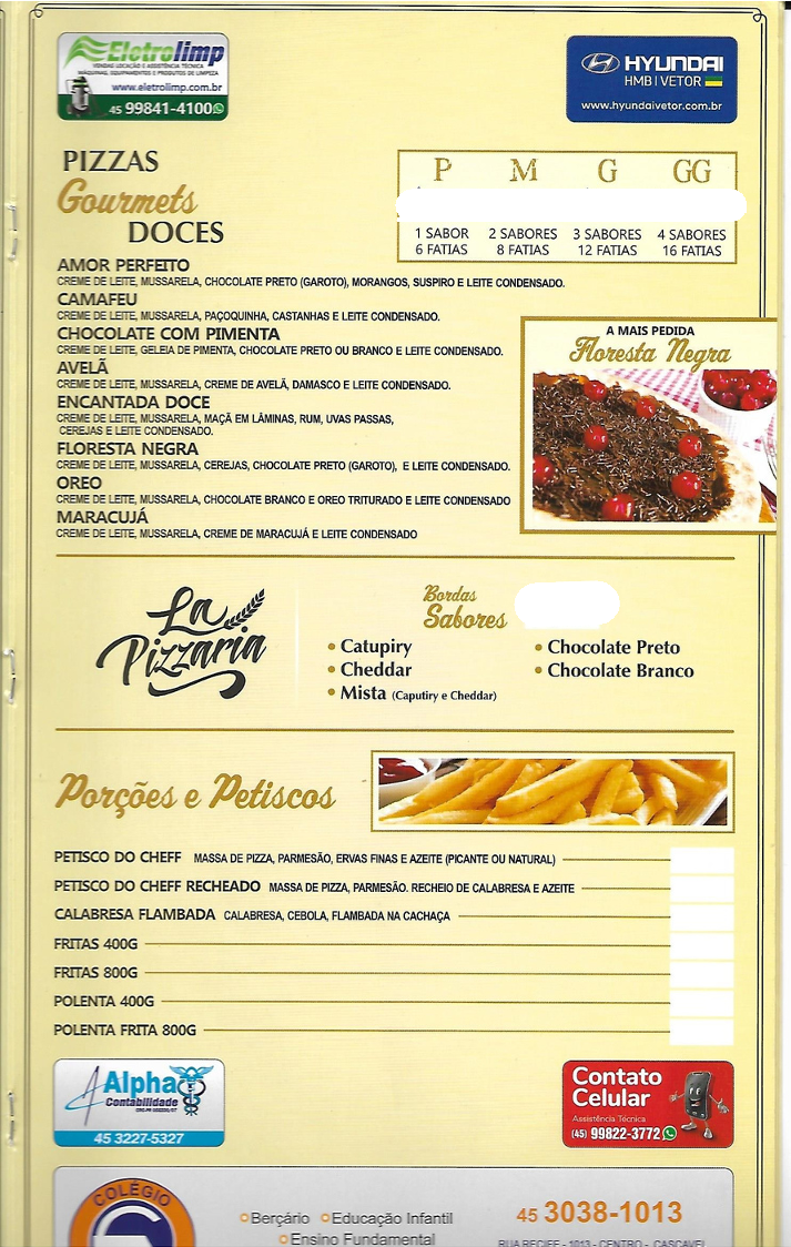 Welcome to La Pizzaria, a gem nestled in the heart of Cascavel, PR. This pizzeria, located on R. Vicente Machado, is renowned for blending tradition with culinary innovation. Their menu boasts an impressive array of traditional pizzas, including the Gigante, Grande, Media, and Pequena—each crafted with a thin, crispy crust that sets the stage for vibrant flavors.